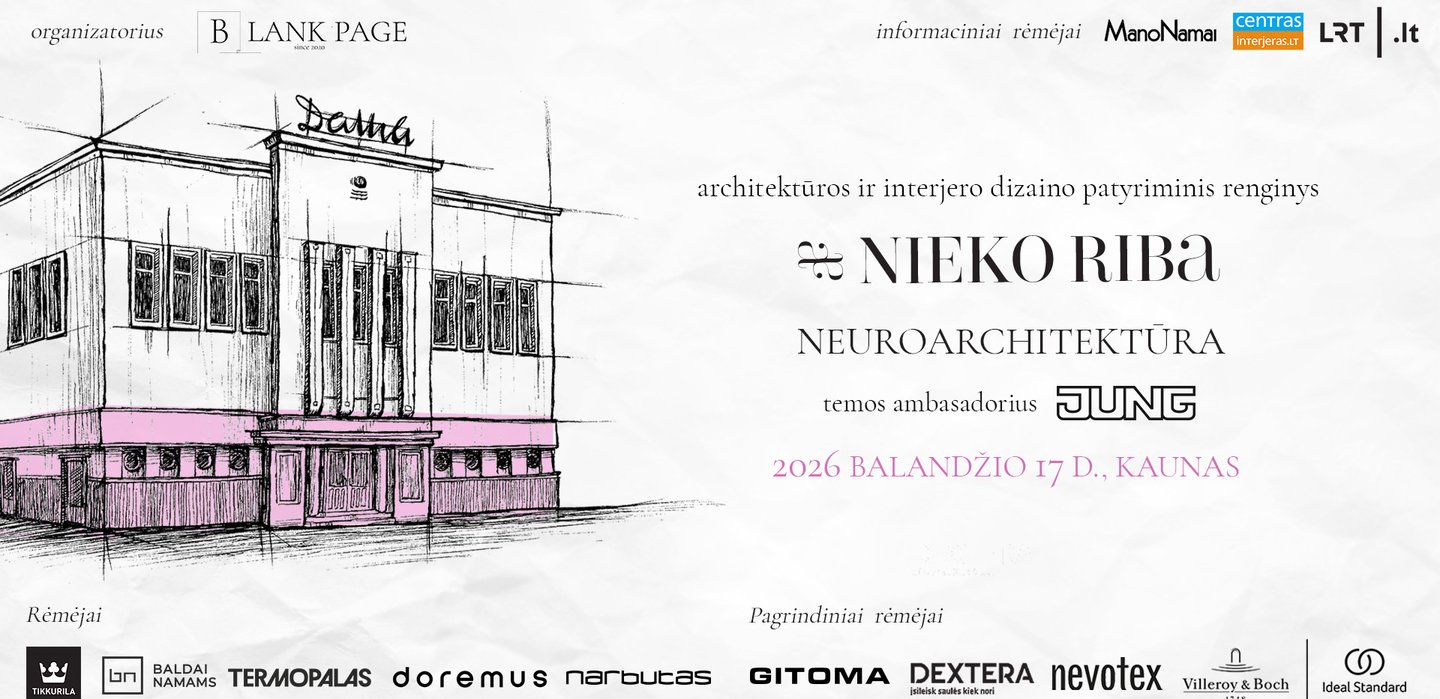 Šiuolaikinis žmogus didžiąją savo gyvenimo dalį praleidžia uždarose erdvėse – namuose, darbo vietose, viešosiose erdvėse. Vis dažniau kalbama apie nuovargį, nerimą, miego sutrikimus ar dėmesio stoką, tačiau retai susimąstoma, kokią įtaką šiems pojūčiams daro mus supanti architektūra ir interjero sprendimai. Būtent šią temą balandžio 17 dieną Kaune nagrinės patyriminis architektūros ir interjero dizaino renginys “NIEKO RIBA”, kurio pagrindinė tema – neuroarchitektūra.